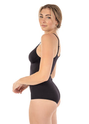 Seamless bodysuit with adjustable straps and hook and eye closure at crotch for the most comfortable fit possible. Tension that smooths and flattens while giving that extra butt support. You'll love it! Style# 802